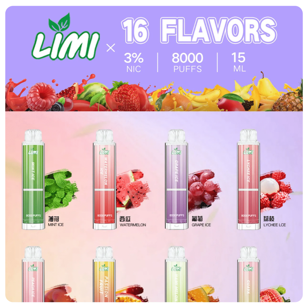 LIMI 8000口一次性電子煙提供超大容量,適合重度使用者。內置 550mAh 電池與 15ML 煙油,提供長達 8000口 的使用體驗。可充電,使用完畢即可拋棄。