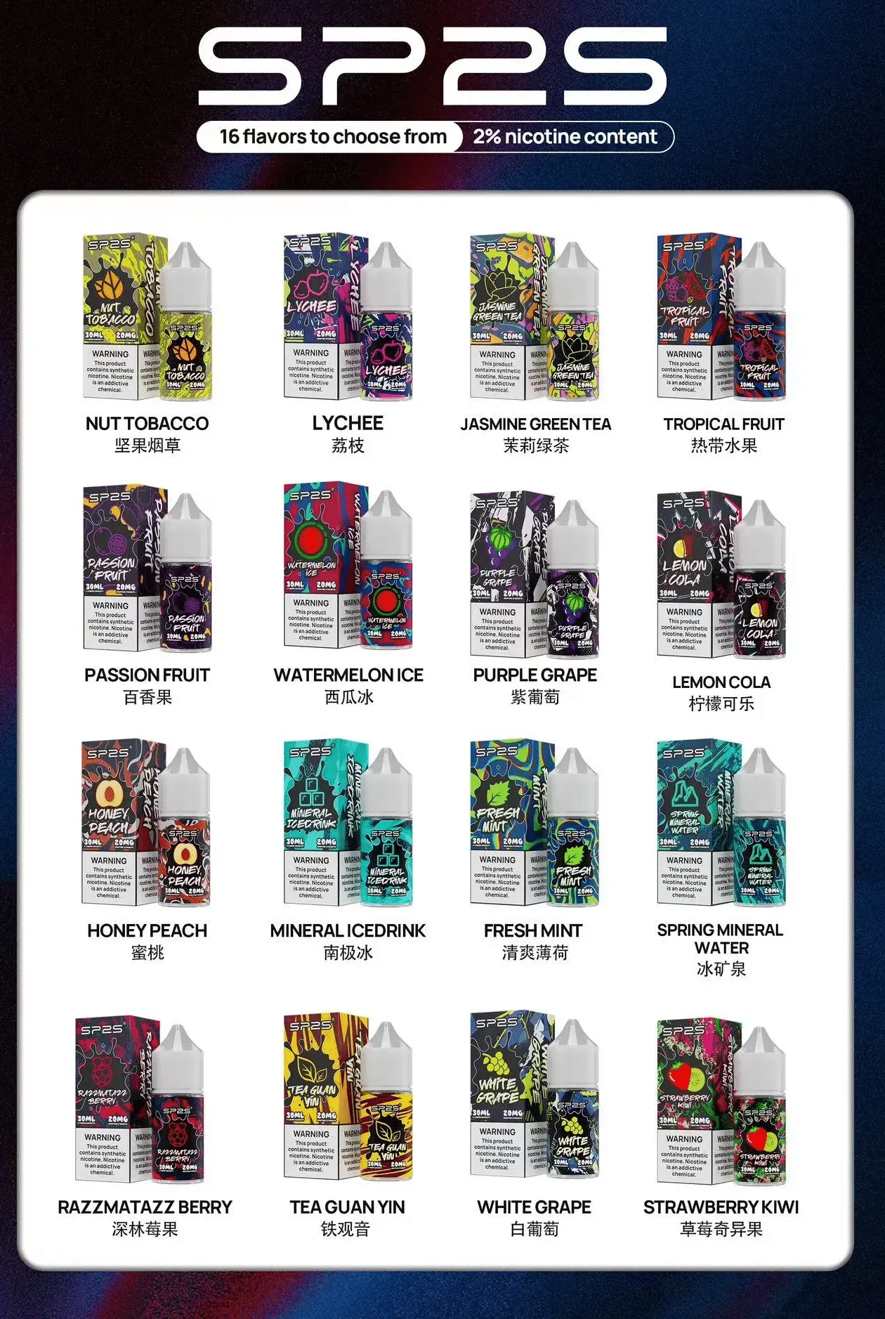 SP2S思博瑞電子煙油,30mL,20mg尼古丁,50/50 PG/VG,16種口味如堅果煙草、茉莉綠茶、百香果。
