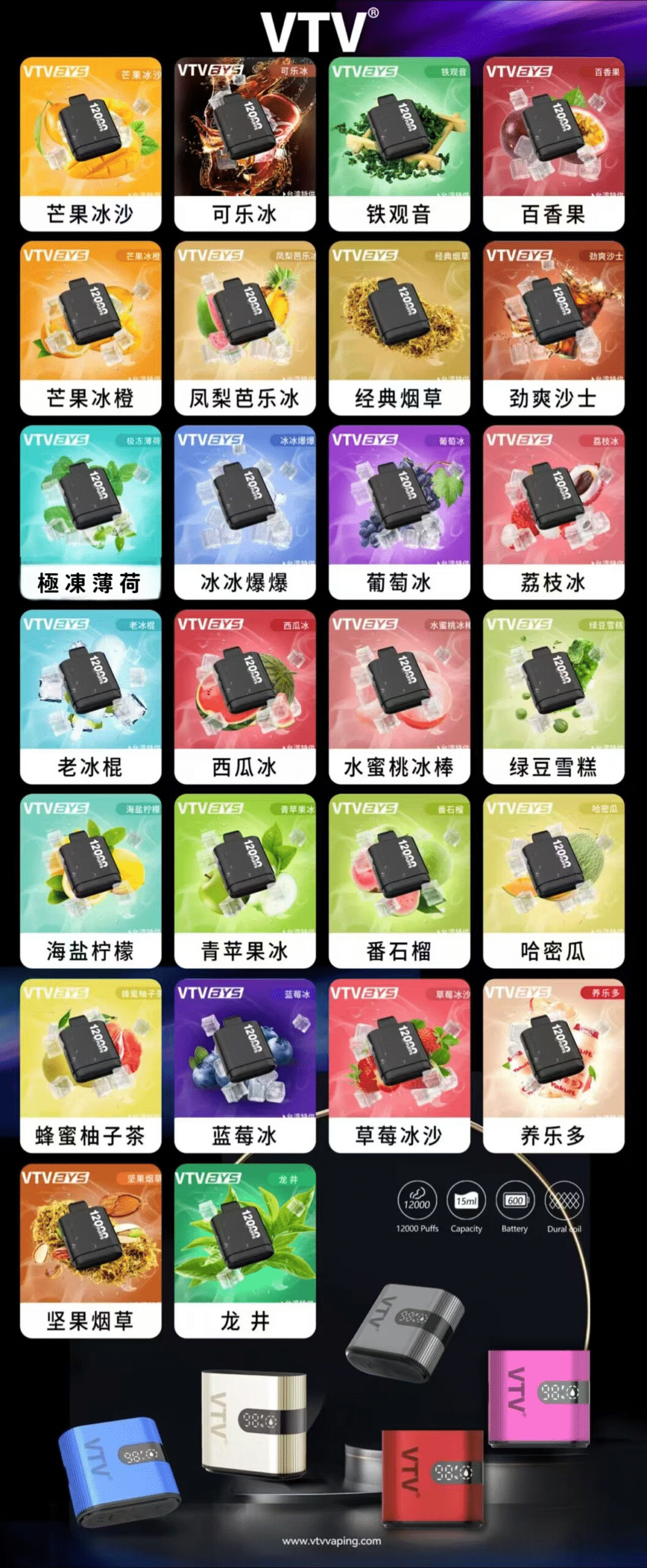 口味 | 極凍薄荷, 冰冰爆爆, 葡萄冰, 老冰棍, 西瓜冰, 青蘋果, 百香果, 鐵觀音, 可樂冰, 沙士冰, 荔枝冰, 哈密瓜, 番石榴, 草莓冰沙, 海鹽檸檬, 藍莓冰, 水蜜桃冰棒, 鳳梨芭樂冰, 綠豆雪糕, 蜂蜜柚子茶, 芒果冰沙, 芒果冰橙, 經典煙草, 堅果煙草 (新), 龍井 (新) |