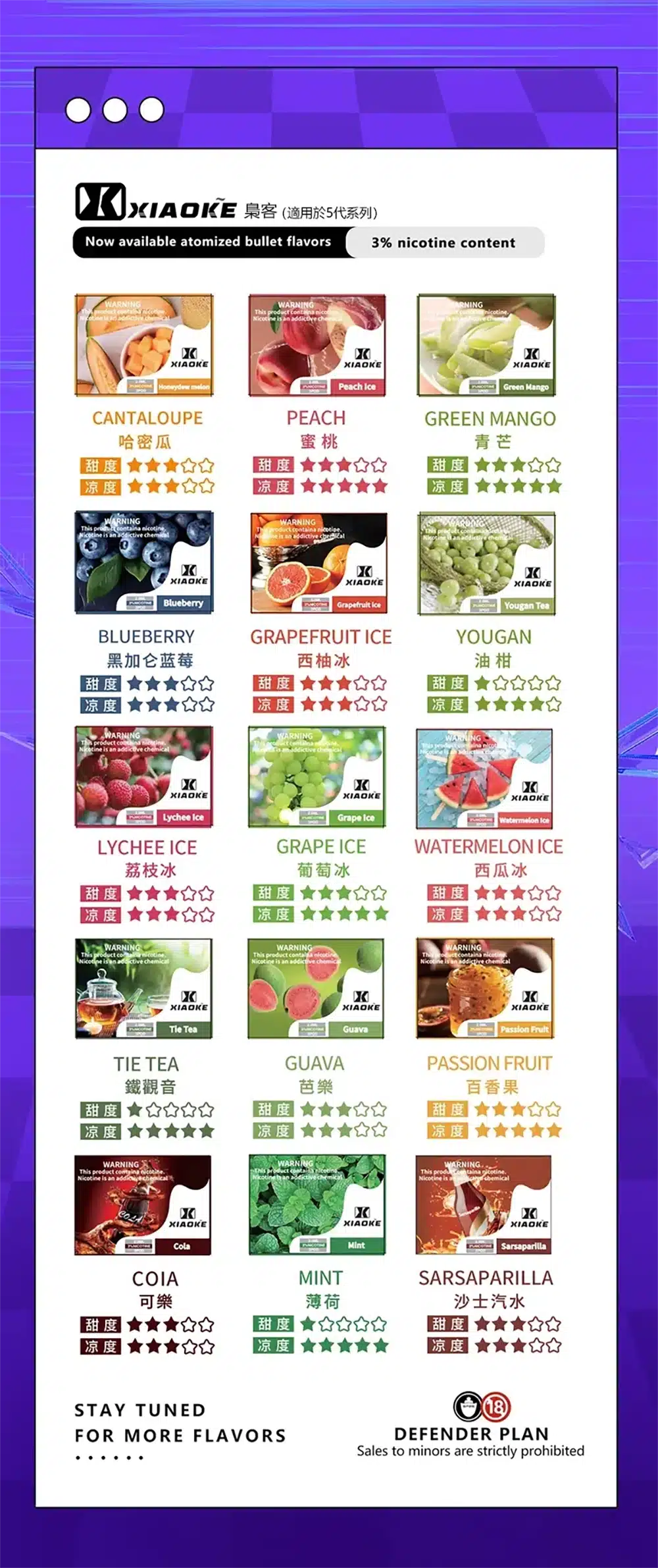 XIAOKE梟客五代電子煙彈以高品質材料與多種口味打造,專為電子煙用戶提供穩定純淨的吸食體驗!